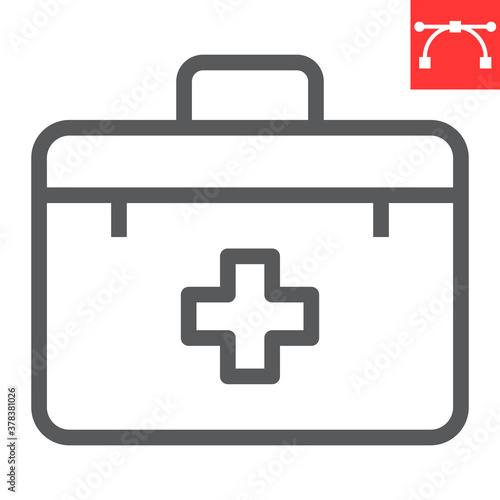 Obraz premium First aid kit line icon, emergency and medical bag, first aid box sign vector graphics, editable stroke linear icon, eps 10.