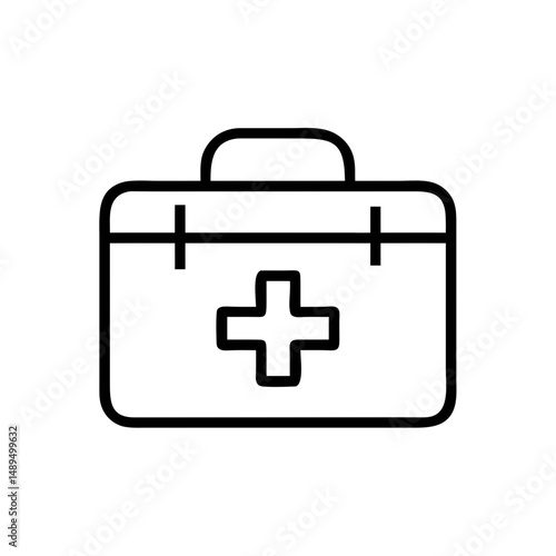 Obraz premium First Aid Kit Line Icon – Medical Emergency Outline Vector Illustration