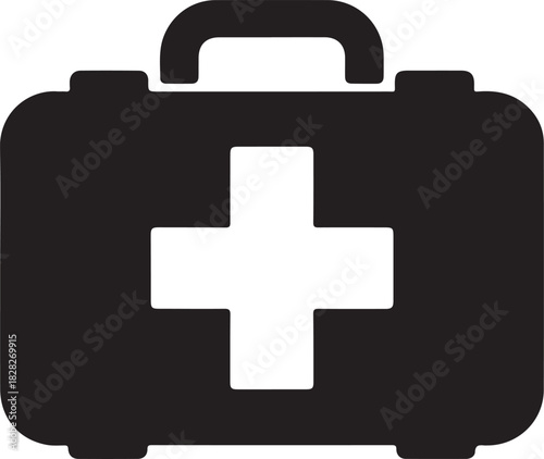 Fototapeta premium First Aid Kit Medical Cross Black and White Icon medical kit