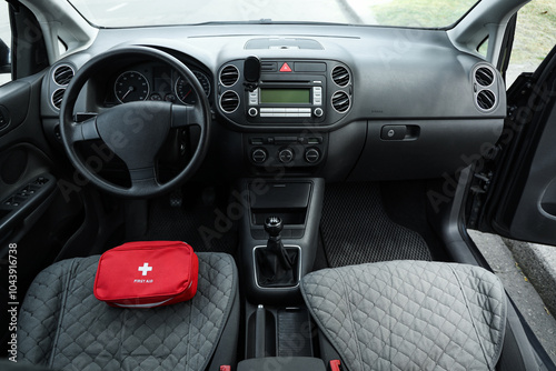 Fototapeta premium First aid kit on car seat