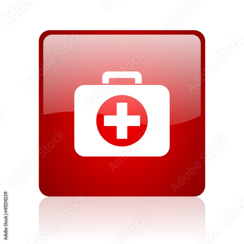 Obraz premium first aid kit red square glossy web icon on white background