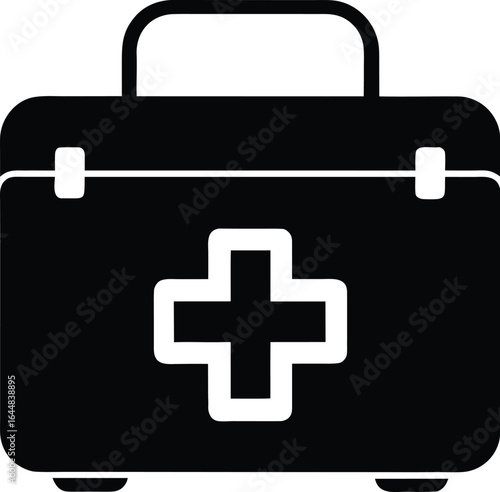 Fototapeta premium "First Aid Kit Silhouette Vector Icon with Medical Cross"