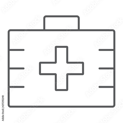© amin268, Fototapeta premium First aid kit thin line icon, health and clinical, medical bag sign, vector graphics, a linear pattern on a white background, eps 10.