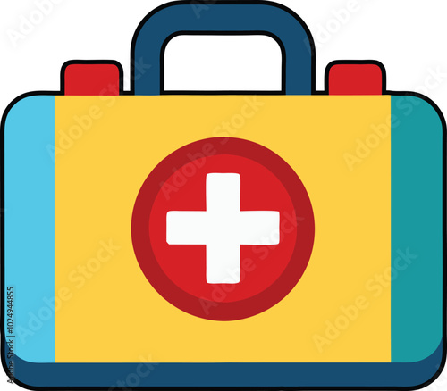 © Shahin_designer, Obraz premium First Aid Kit Vector Icon Illustration. Flat Cartoon Style.