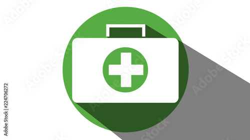 © mooseproductions, Obraz premium First Aid medical box icon green long shadow
