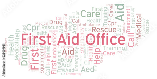 © sharafmaksumov, Obraz premium First Aid Office word cloud, made with text only.