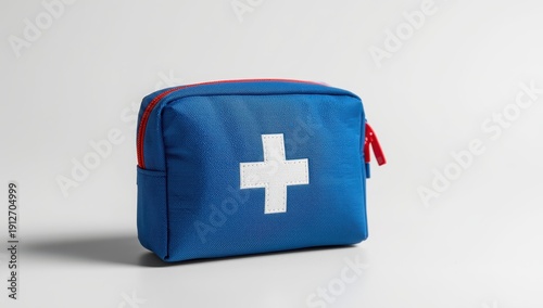 © VolumeThings, Obraz premium First aid pouch featuring a white cross on a plain background
