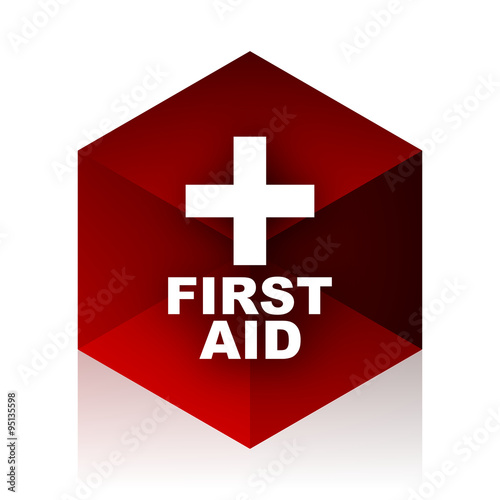 © Alex White, Obraz premium first aid red cube 3d modern design icon on white background
