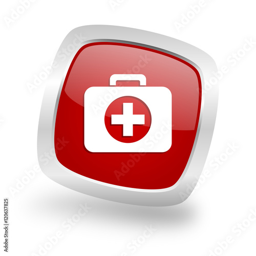Obraz premium first aid square red glossy chrome silver metallic web icon