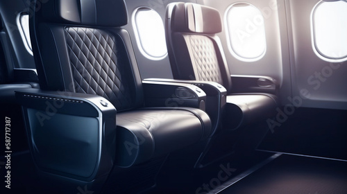 Fototapeta premium first class business luxury seats for vacations airplane row empty seats...
