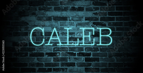 © christopher-oliver, Fototapeta premium first name caleb in blue neon on brick wall