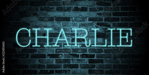 © christopher-oliver, Fototapeta premium first name charlie in blue neon on brick wall