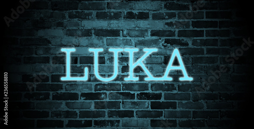 © christopher-oliver, Fototapeta premium first name Luka in blue neon on brick wall