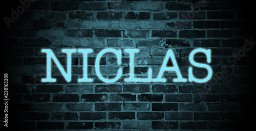 © christopher-oliver, Fototapeta premium first name Niclas in blue neon on brick wall