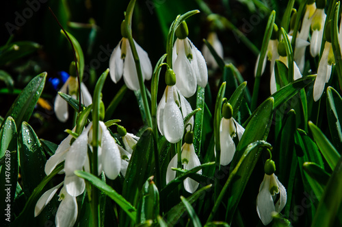 © ihorbondarenko, Fototapeta premium First snowdrops in a forest on spring