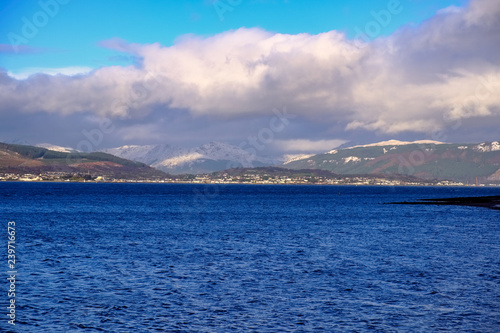 © James, Fototapeta premium First Snows on the Argyle Hills in Scotland Looking over from Gourock.