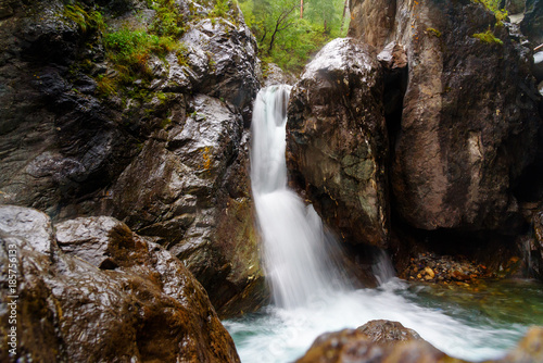 © Elena Odareeva, Naklejka premium First waterfall on Kyngyrga River. Arshan. Russia