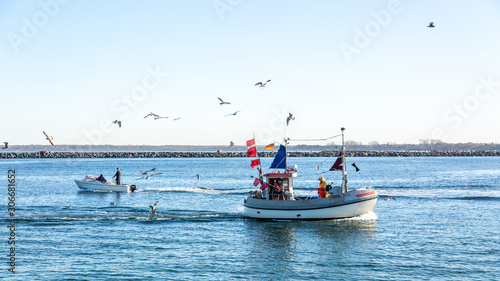 © FGWDesign, Fototapeta premium Fischer auf der Ostsee bei Rostock Warnemünde