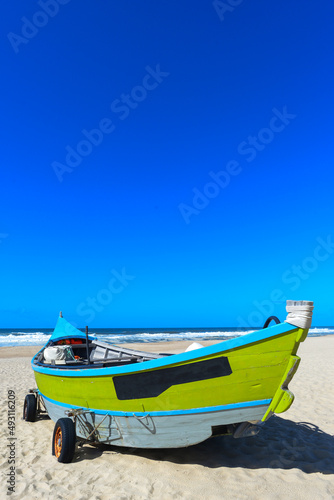 © Ilhan Balta, Fototapeta premium Fischerboot am Strand von Praia de Mira, Portugal