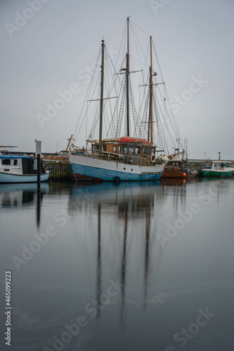 Fototapeta premium Fischerboot im Hafen langzeitbelichtung