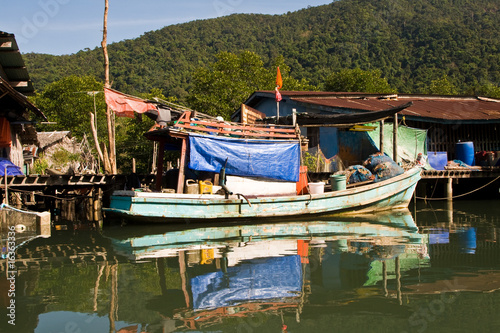 © travelview, Obraz premium Fischerboote in Fischerdorf im Mangrovensümpfen