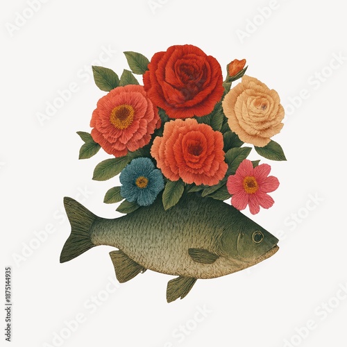 © Rawpixel.com, Obraz premium Fish adorned with vibrant flowers.