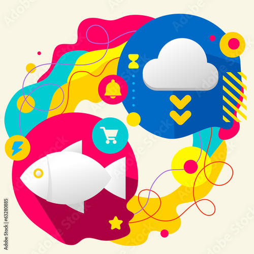Fototapeta premium Fish and cloud on abstract colorful splashes background with dif