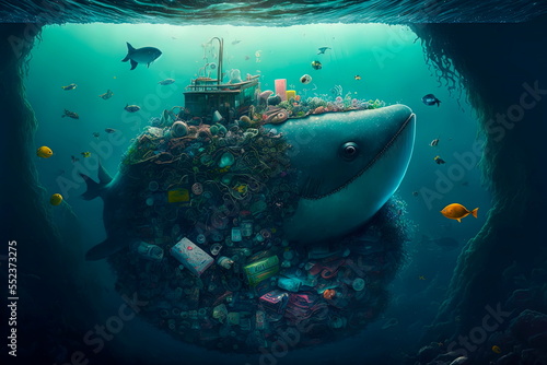© Лилия Захарчук, Fototapeta premium Fish and plastic pollution.Plastic water bottles pollution in ocean . Ocean environmental problem.