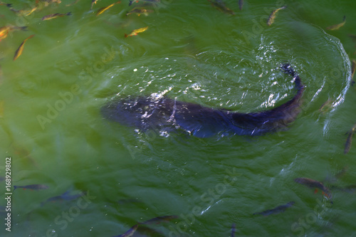 Obraz premium Fish catfish and ide live in ponds to cool the Chernobyl nuclear power plant. Dead radioactive zone. Consequences of the Chernobyl nuclear disaster, August 2017.