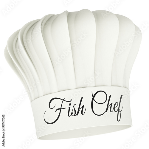 © alexlmx, Fototapeta premium Fish Chef white chef hat. 3D rendering