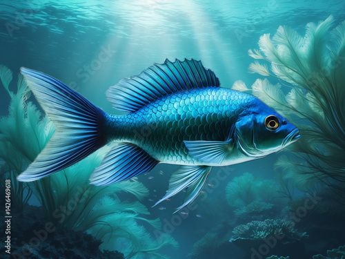© mari, Naklejka premium Fish Displayed Against Various Creative Backgrounds