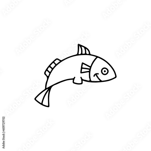 © ahmad yusup, Fototapeta premium fish doodle vector illustration line concept
