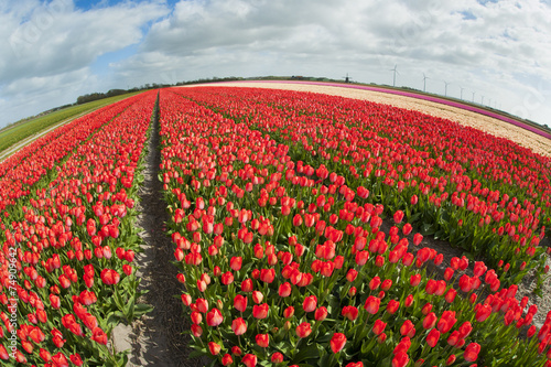 © andreanita, Obraz premium Fish eye view of a tulip field ,the Netherlands.