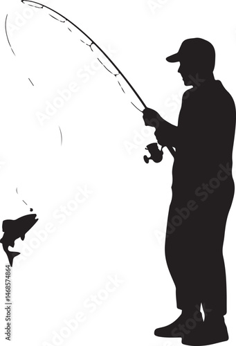 © vector silhuette, Obraz premium “Fish Hunting Silhouette | Fishing Clipart for Shirts, Decals, Logos & Outdoor Adventure Art”