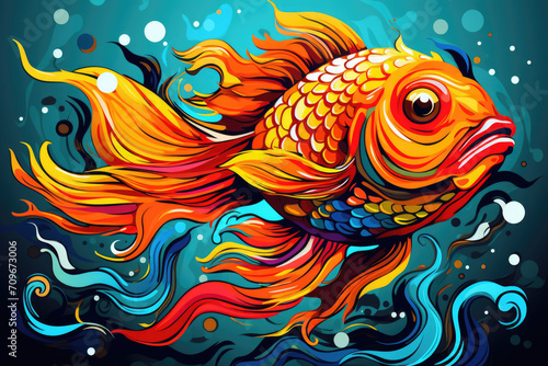 © Michael, Obraz premium Fish in modern colorful pop art style