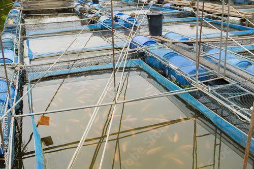 Obraz premium fish(Nile tiapia) farm in the river for business, Thailand