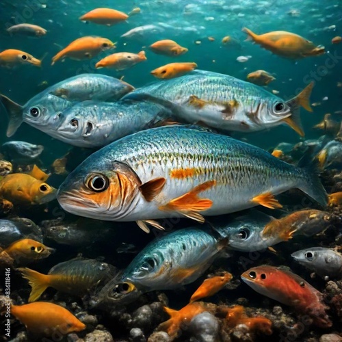 © mijanulhoque, Fototapeta premium fish on a blue background