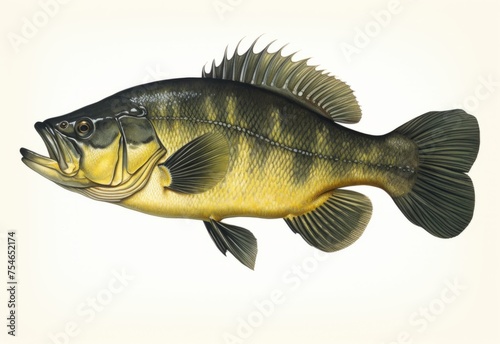 © ART IMAGE DOWNLOADS, Fototapeta premium Fish on white background out of the river , green and black colours