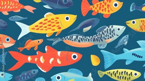 © IES Astro Stock, Naklejka premium Fish pattern. Fish pattern texture with copy space. Close-up fish scale pattern. Aquatic animal design. Fish scales. Realistic fish pattern. Fish design background. Detailed fish pattern close-up. Mar