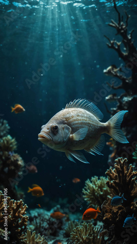 Obraz premium fish playing hide and seek deep underwater background