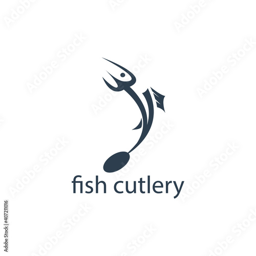 Fototapeta premium fish restaurant logo illustration cutlery design vector template