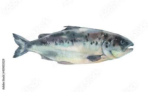 Naklejka premium Fish. Salmon. Watercolor illustration on a white background.