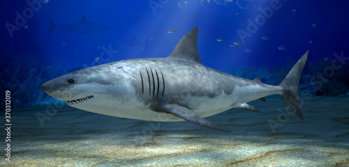 © Lena_graphics, Fototapeta premium Fish Shark underwater in the blue ocean. 3d illustration.