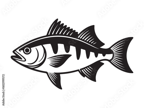 Fototapeta premium Fish Silhouette Vector Illustration, Black and White Fishing Logo Icon- EPS