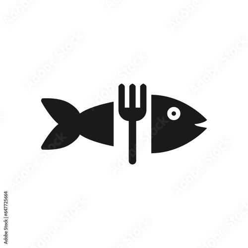 Fototapeta premium Fish silhouette with fork. Simple minimal vector design.