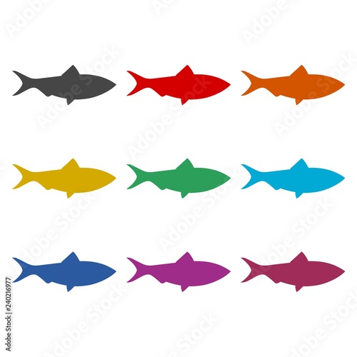 © sljubisa, Obraz premium Fish simple flat icon or logo, color set