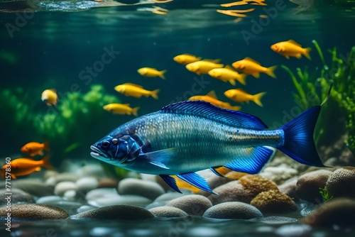 © Ramzan Aziz, Naklejka premium Fish submerged in water lovely picture taken inside the water.