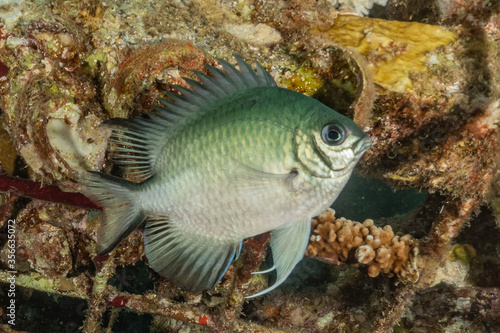 © yeshaya, Fototapeta premium Fish swim in the Red Sea, colorful fish, Eilat Israel
