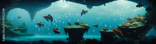 Naklejka premium Fish swimming in the sea, dark deep.