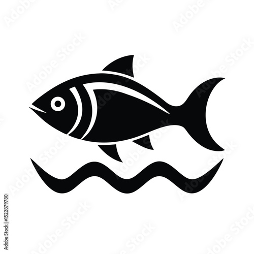 © sillee, Fototapeta premium Fish Swimming in Waves Ocean Icon Vector Illustration